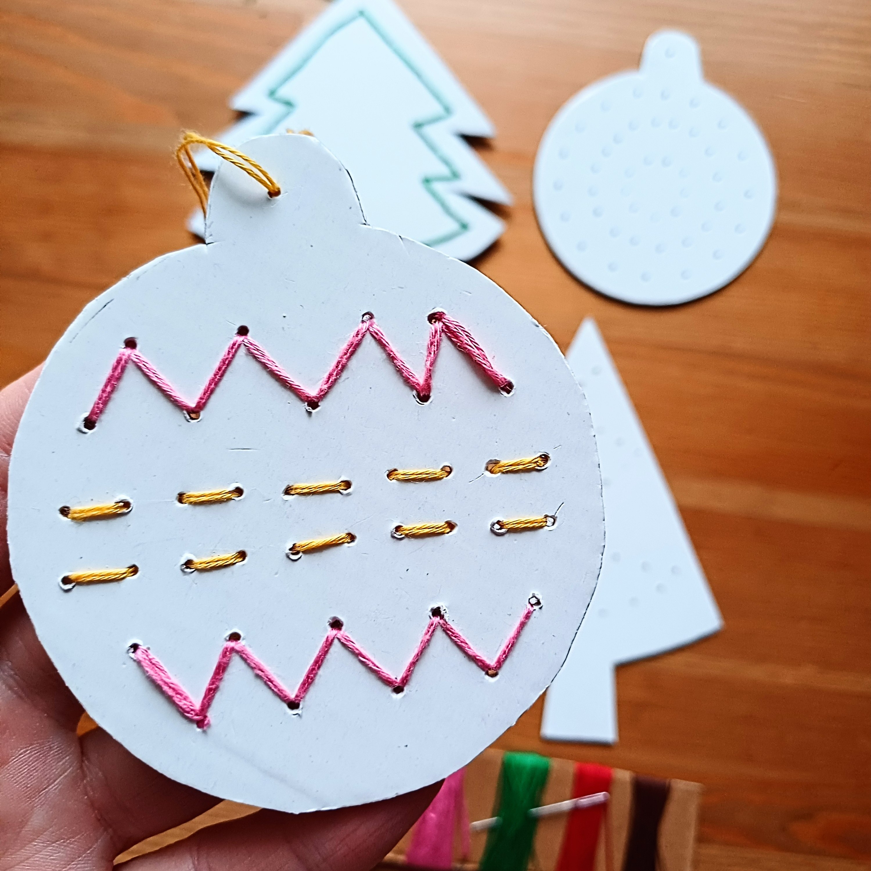 Začněte jednoduše. Pro menší děti je ideální třeba karton, do kterého předem připravíte dírky – do jednoduchých tvarů, linek nebo obrázků. Děti pak už „jen“ provlékají jehlu a nit. I to je pro ně ze začátku velká výzva, která vyžaduje soustředění, klid a trpělivost.